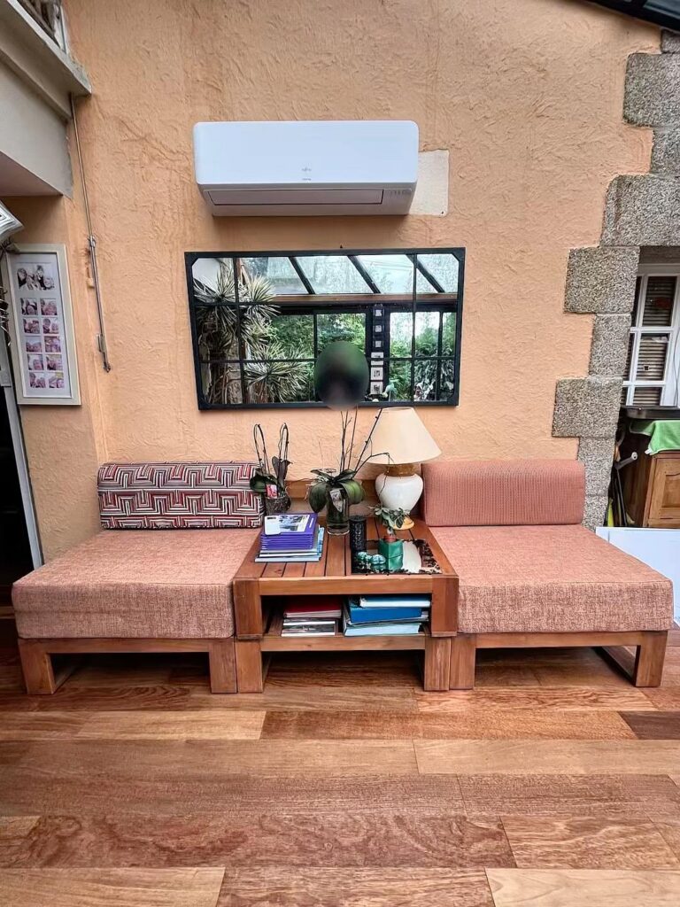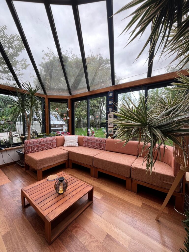 Ma cliente possédait un salon de véranda composé de 7 modules, type fauteuils, installé depuis plus de vingt ans. La structure était encore en très bon état, tout comme les garnitures des coussins. Mais les housses, elles, avaient vécu : décolorées par le soleil, fatiguées par le temps et plus vraiment en accord avec ses goûts actuels.